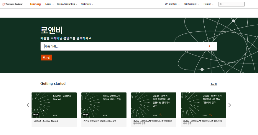 상단의 이미지의 링크를 클릭하거나, 다음의 링크(https://training-aem.thomsonreuters.com/kr/lawnb)를 통해 로앤비의 트레이닝 포털에 방문해보세요.